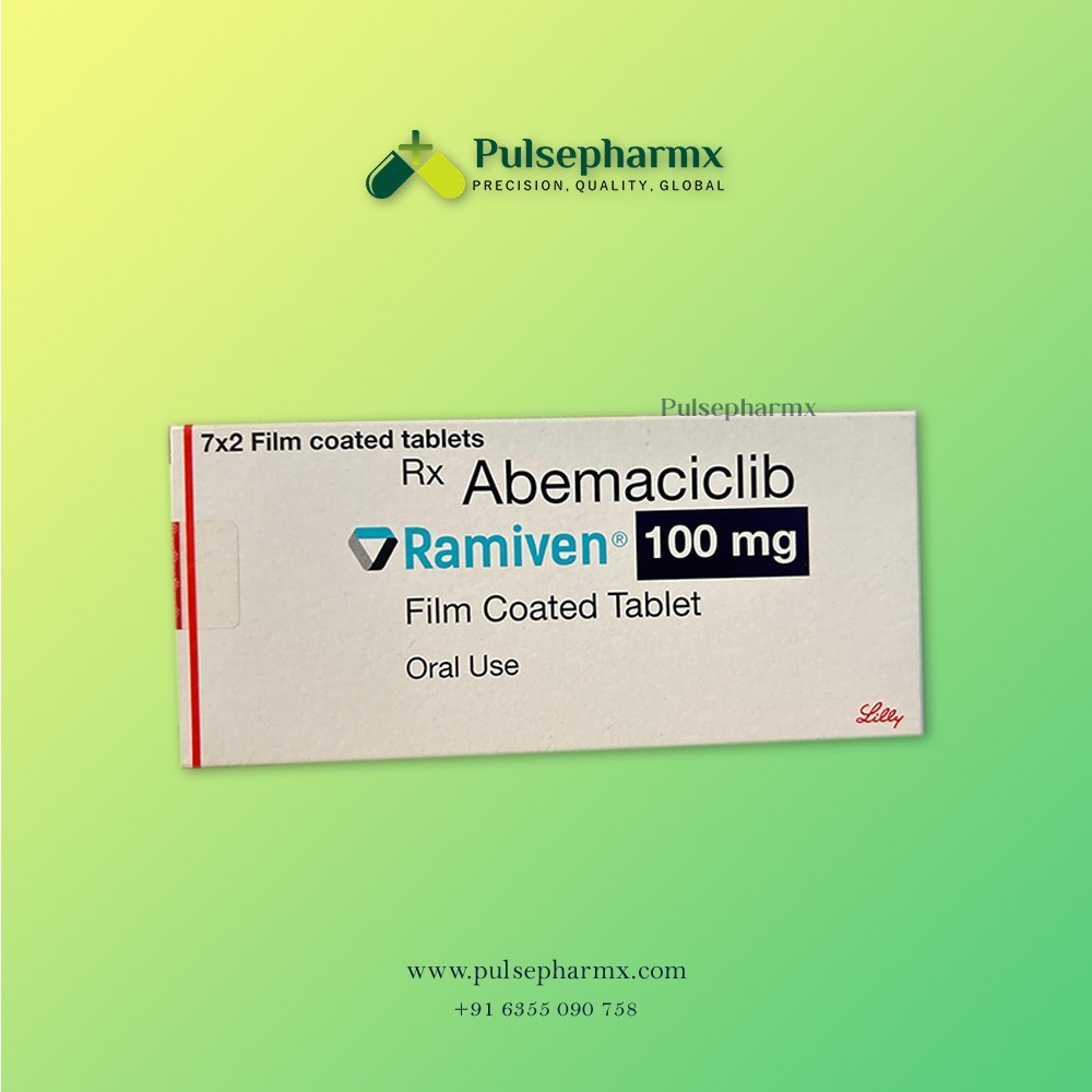 Ramiven 100 mg (Abemaciclib) is a prescription medicine mainly used in cancer treatment to help slow or stop the growth of cancer cells. It is a film-coated tablet taken orally as directed by a healthcare professional and is often used as part of combination therapy. This medication should always be taken under proper medical supervision to ensure safety, effectiveness, and the best treatment outcome.