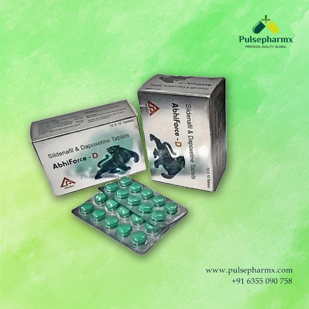 AbhiForce-D (Sildenafil & Dapoxetine Tablets) is a prescription medicine commonly used to treat erectile dysfunction and premature ejaculation in men. It helps improve blood flow for a firm erection while also helping delay ejaculation. This tablet is taken orally as directed by a healthcare professional. It should always be used under proper medical supervision for safe and effective results.
