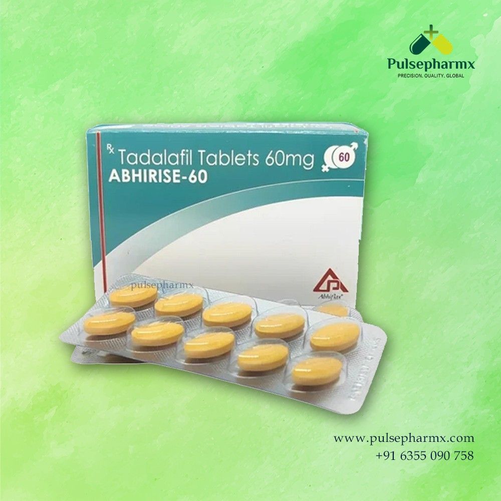 Abhirise 60 mg (Tadalafil) is a prescription medicine commonly used to treat erectile dysfunction in men. It works by improving blood flow, helping achieve and maintain a firm erection during sexual stimulation. This tablet is taken orally as directed by a healthcare professional. It should always be used under proper medical supervision for safe and effective results.