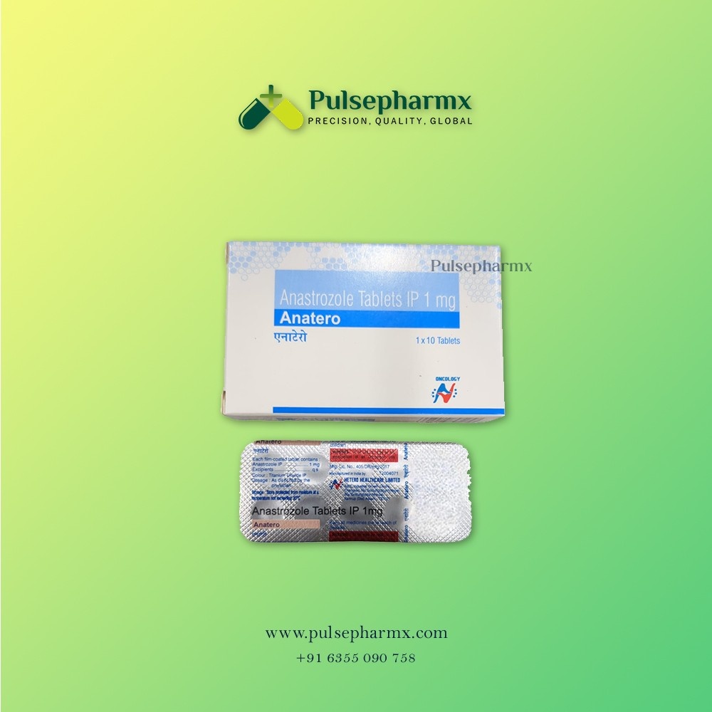 Anatero 1 mg (Anastrozole) is a prescription medicine commonly used in the treatment of certain hormone-related cancers. It works by lowering estrogen levels in the body, helping slow or stop the growth of cancer cells. This tablet is taken orally as directed by a healthcare professional and is often part of long-term therapy. It should always be used under proper medical supervision for safe and effective treatment.