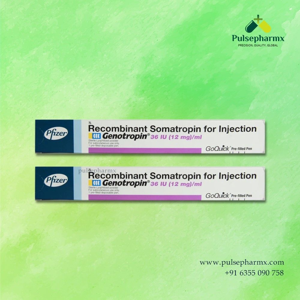 Genotropin 36 IU (Somatropin Injection) is a prescription growth hormone medicine used to treat growth hormone deficiency in children and adults. It helps support normal growth, cell development, and metabolic balance in the body. This prefilled injection pen is administered as directed by a healthcare professional. It should always be used under proper medical supervision for safe and effective treatment.