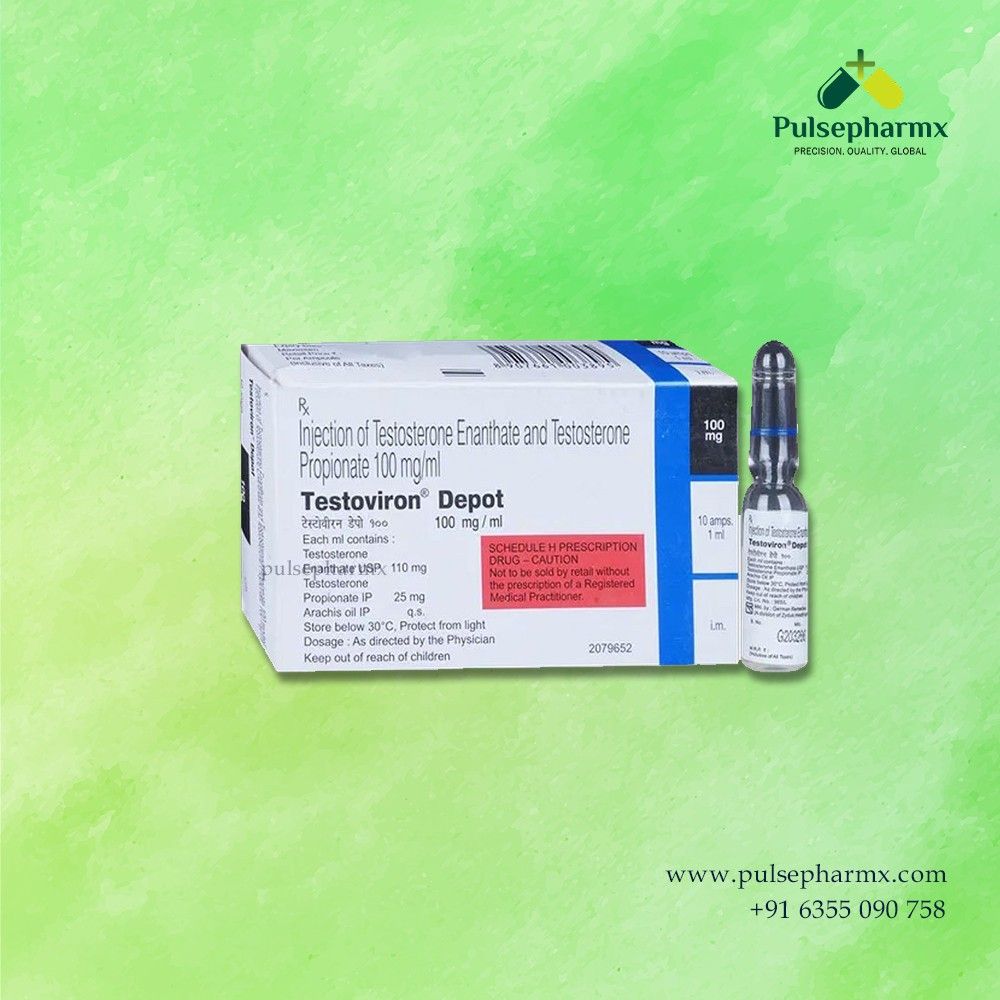 Testoviron Depot 100 mg Injection is a testosterone replacement therapy containing testosterone enanthate and testosterone propionate. It is used to treat low testosterone levels in men and is administered through intramuscular injection under medical supervision. This treatment may help improve energy, muscle strength, mood, and overall well-being. It should always be used as prescribed by a healthcare professional for safe and effective results.