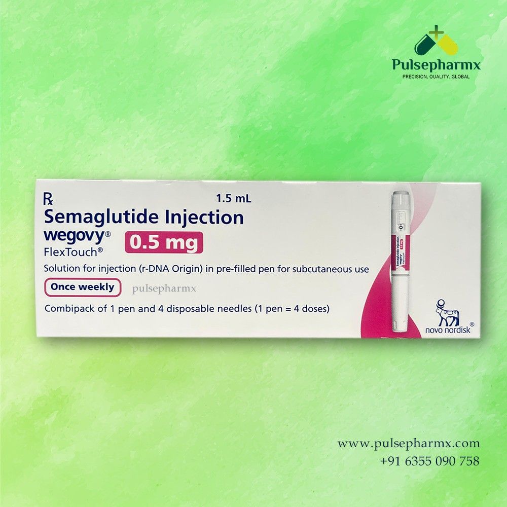 Wegovy 0.5 mg (Semaglutide Injection) is a prescription medicine used for weight management and blood sugar control in adults. It works by regulating appetite, improving insulin response, and supporting metabolic balance. This prefilled injection pen is typically administered once weekly as directed by a healthcare professional. It should always be used under proper medical supervision for safe and effective treatment.