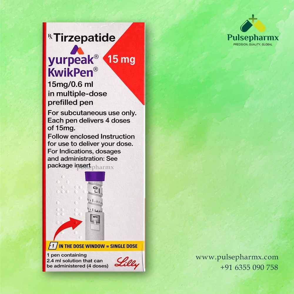 Yurpeak KwikPen 15 mg (Tirzepatide Injection) is a prescription medicine used to help manage type 2 diabetes and improve blood sugar control. It works by supporting insulin response and regulating appetite and glucose levels. This prefilled injection pen is administered as directed by a healthcare professional. It should always be used under proper medical supervision for safe and effective treatment.